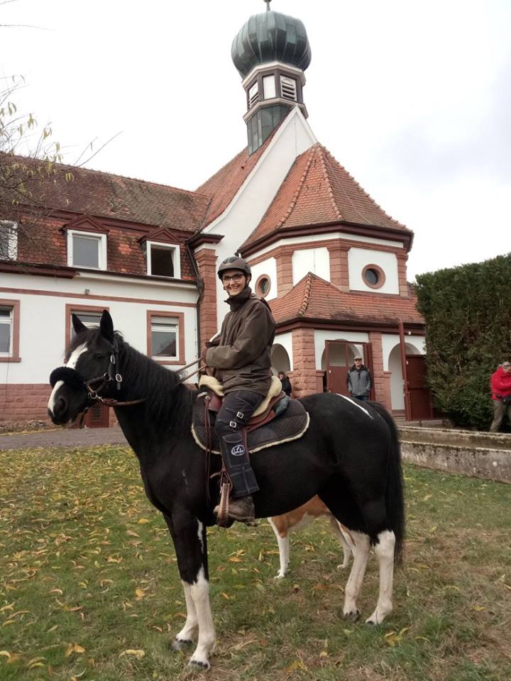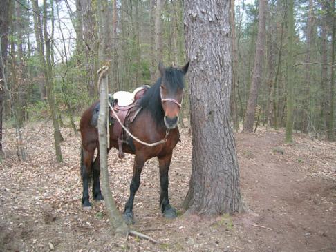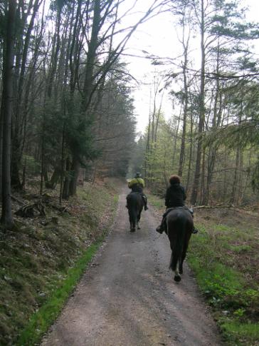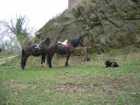 Pause auf der Burg Landeck. Reiten im Wald Pause am Bethof